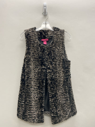 Betsey Johnson Size M Black/Taupe Drape Faux Fur Ladies Vest