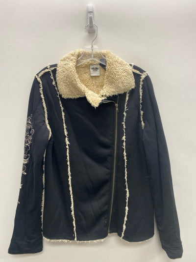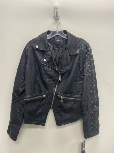 Bebe Size L Black Lace-Up Zip Down Faux Leather Ladies Jacket