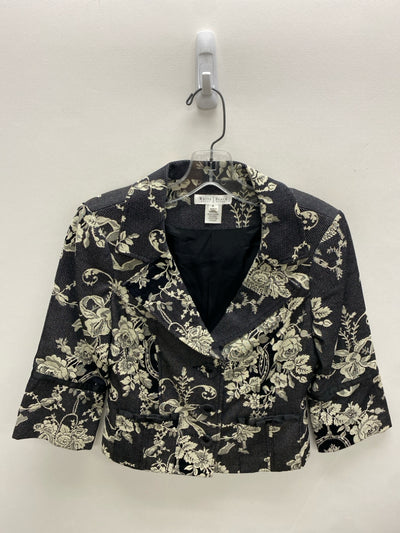 Wht House/Blk Mkt Size 8 Black Cream Flowers 3/4 Sleeve Ladies Jacket