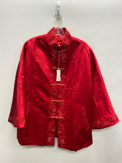 Size 10 Red Tan Flowers Beaded Ladies Jacket