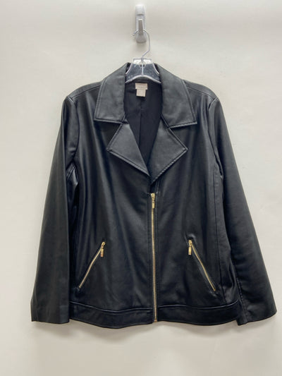 Chico's Size 2 Black Zip Down Faux Leather Ladies Jacket