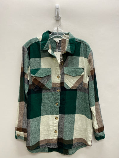 beachlunchlounge Size S Green Cream/Brown Squares Button Up Ladies Jacket
