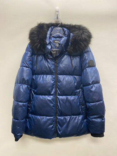 DKNY Size XL Dark Blue Zip Down Hooded Ladies Coat