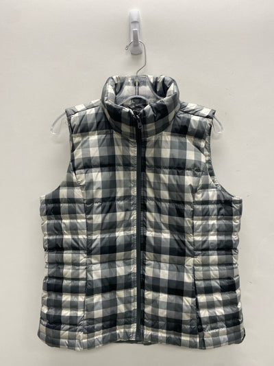 Lands End Size M Gray/Cream Black Checkered Puffer Ladies Vest