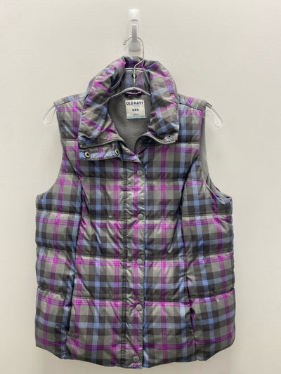 Old Navy Size M Gray Purple/Blue Plaid Puffer Ladies Vest
