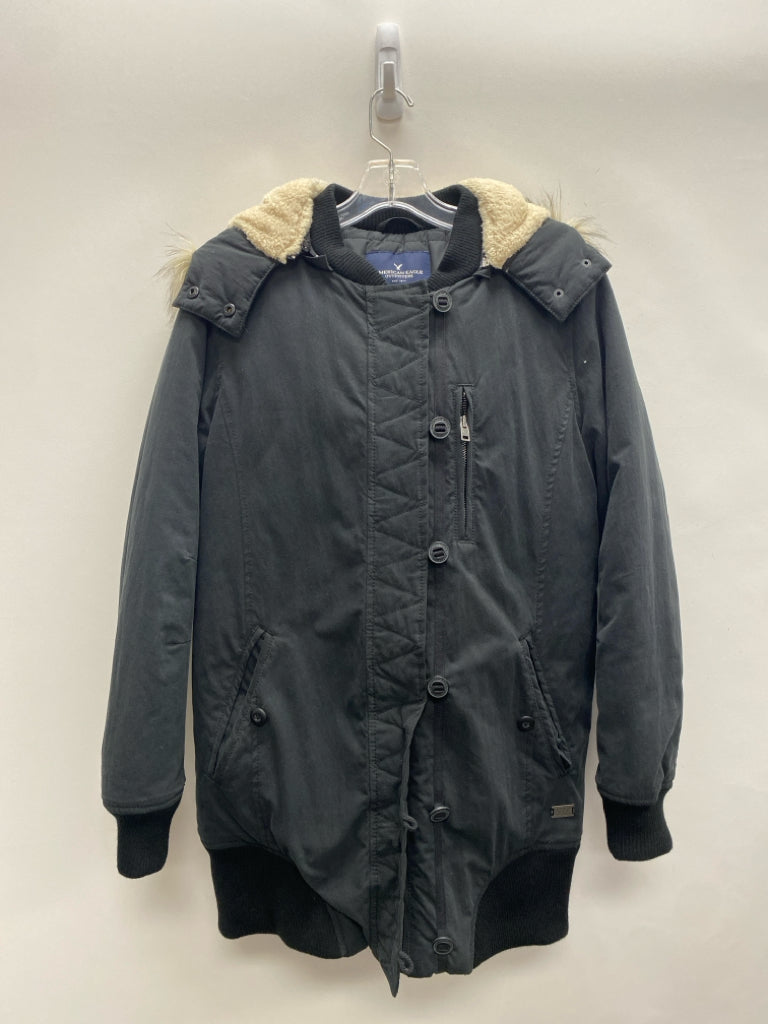 American Eagle Size M Black Beige Zip Down Hooded Ladies Coat