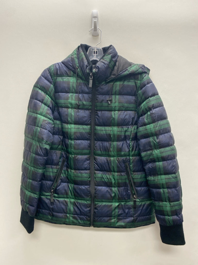 Charlie B Size M Navy/Green Black Plaid Puffer Hooded Ladies Coat