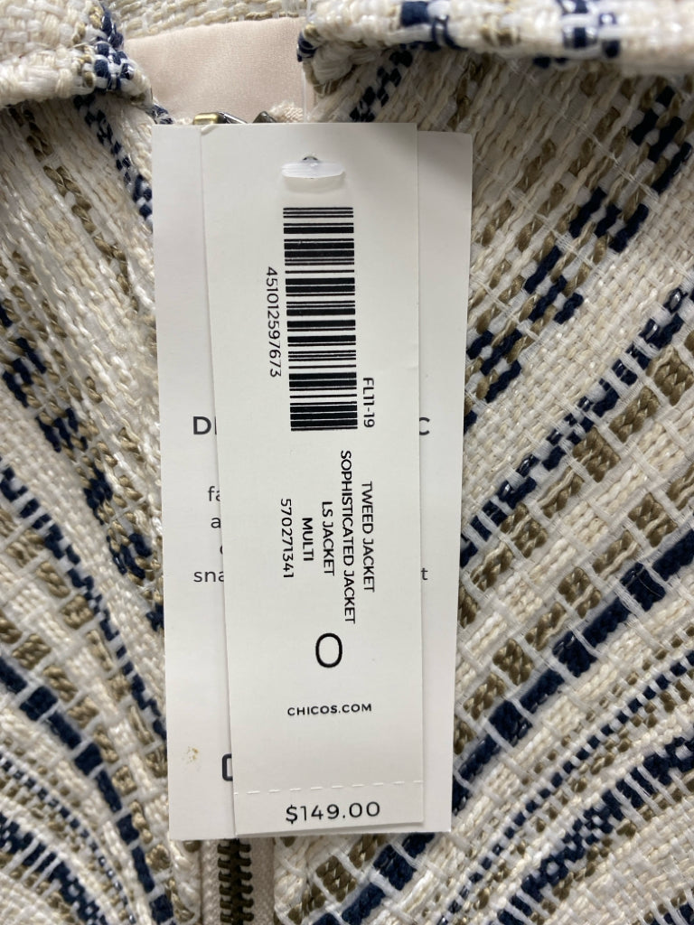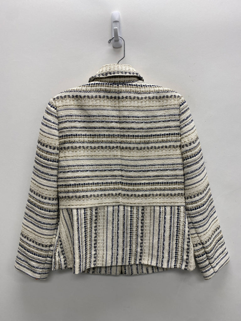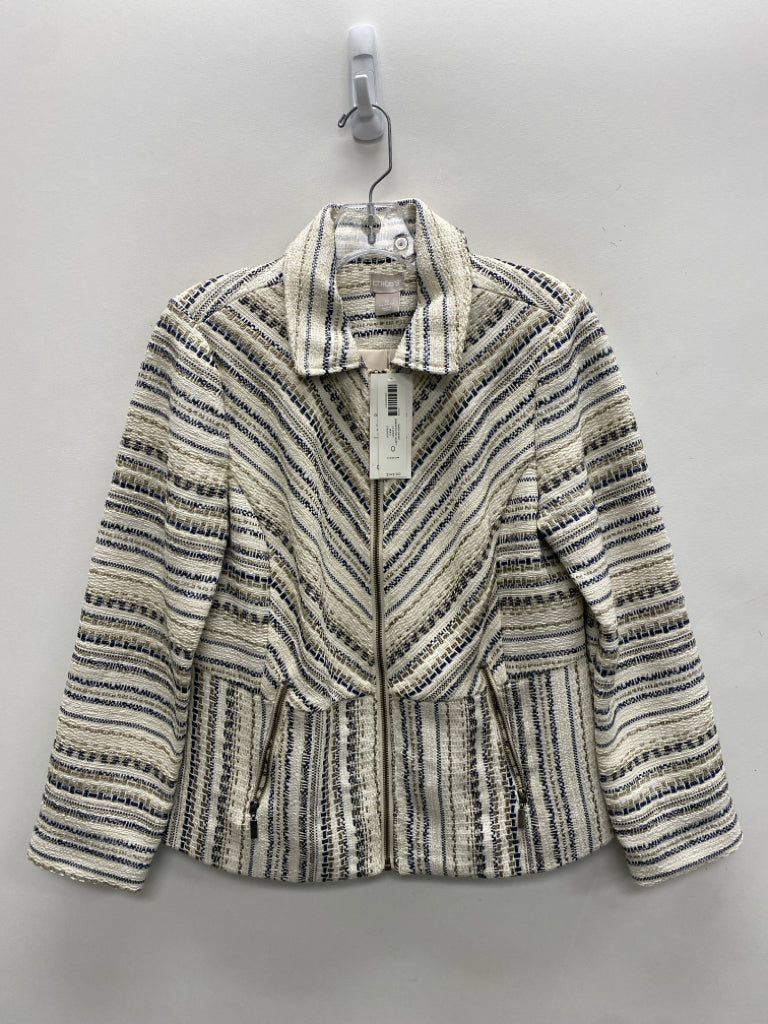 Chico's Size 0 White/Navy Taupe Woven Zip Down Ladies Jacket