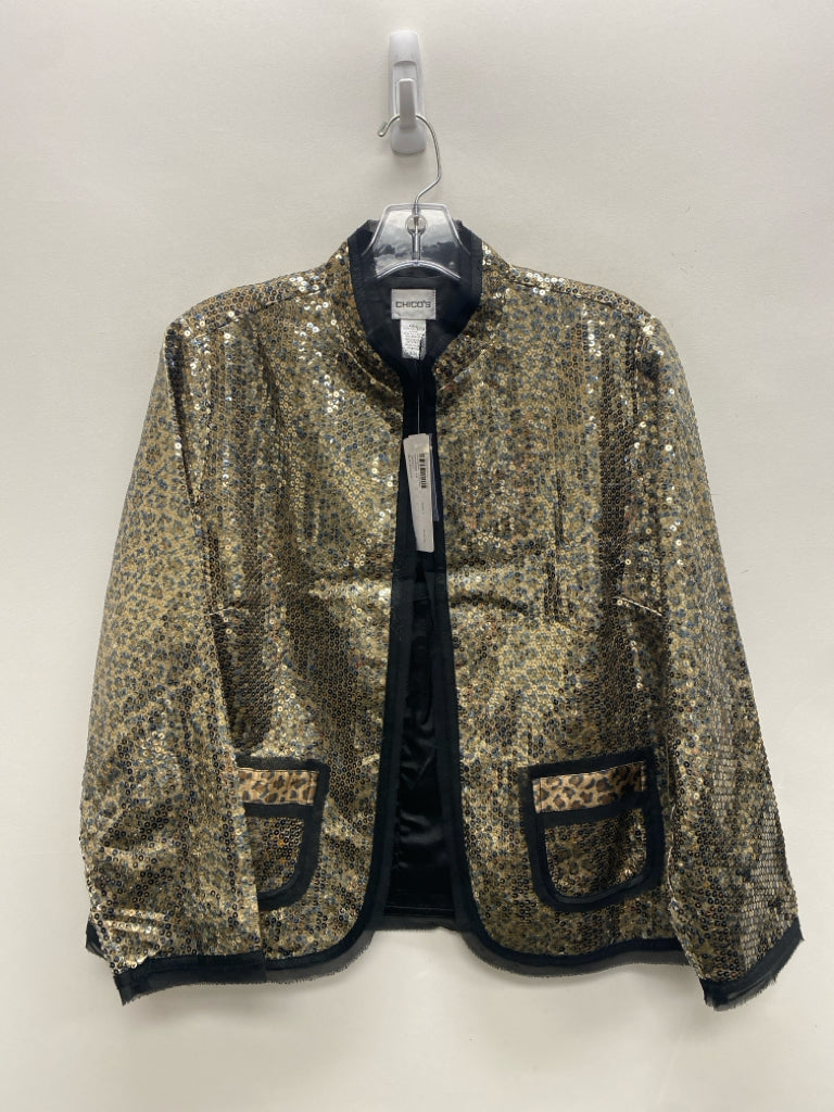 Chico's Size 1 Black Gold/Silver Sequins Ladies Jacket