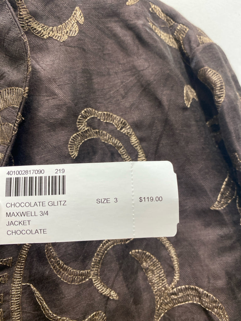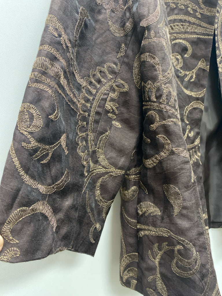 Chico's Size 3 Brown Copper Drape Embroidered Ladies Jacket