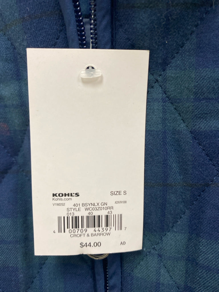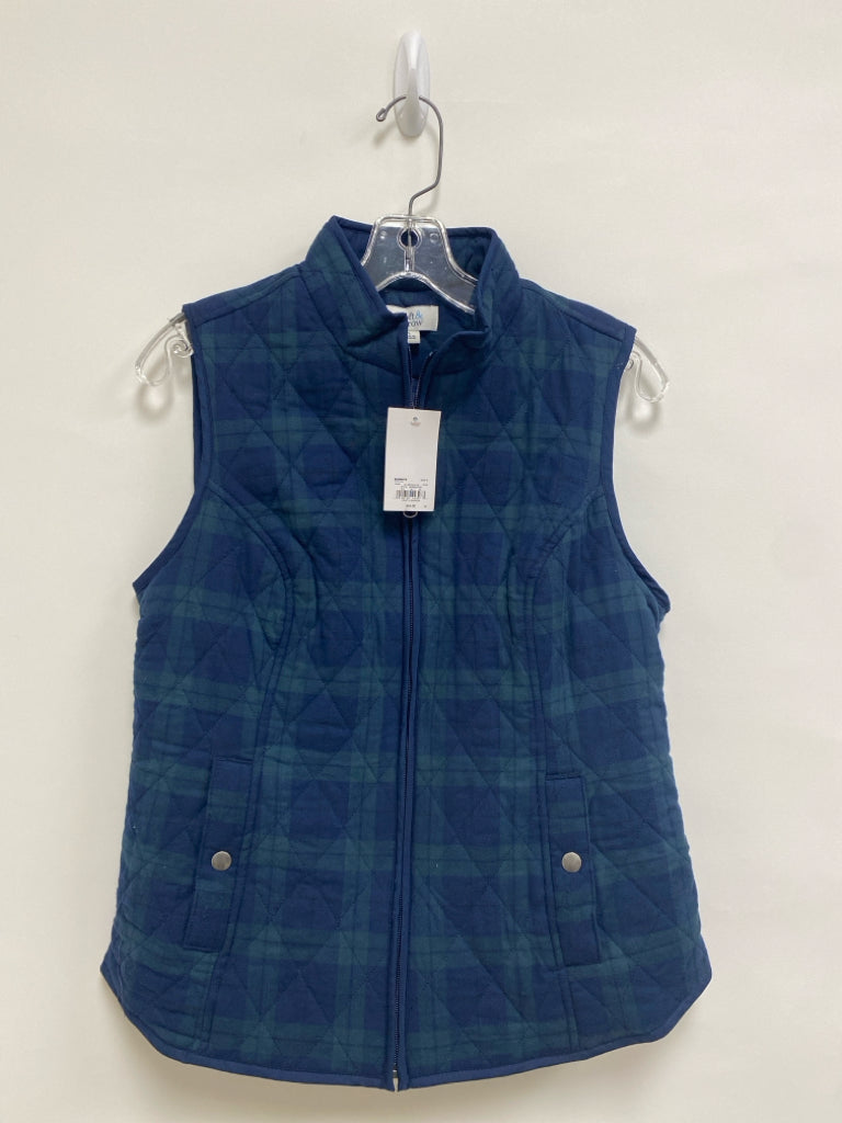Croft/Barrow Size S Navy Seafoam Plaid Zip Down Ladies Vest