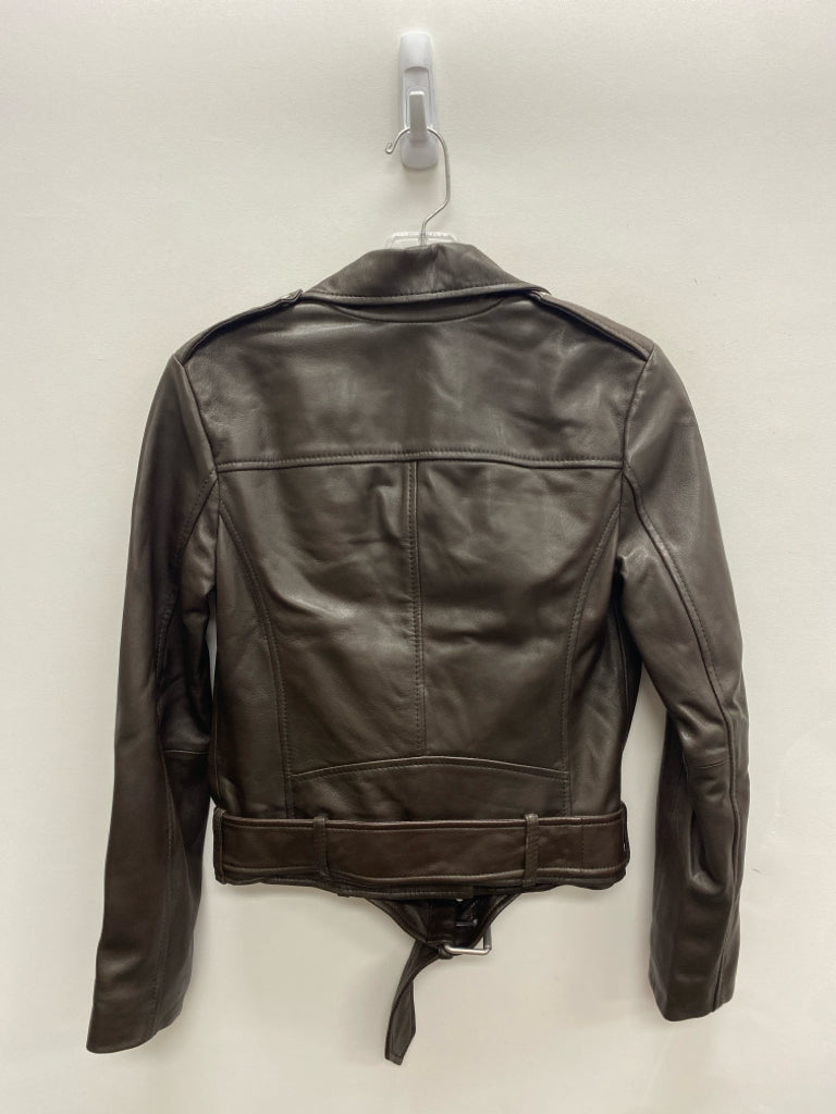 Gianni Bini Size XS Brown Zip Down Leather Ladies Jacket