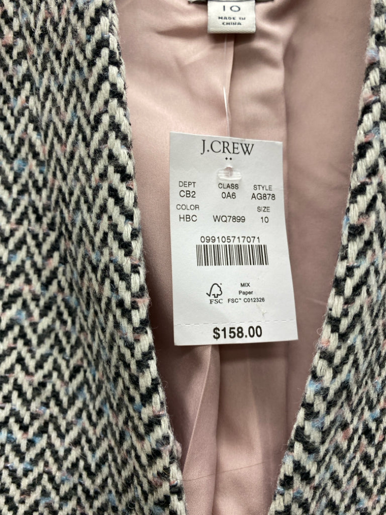 J Crew Size 10 Cream Black/Blue Herringbone Ladies Jacket