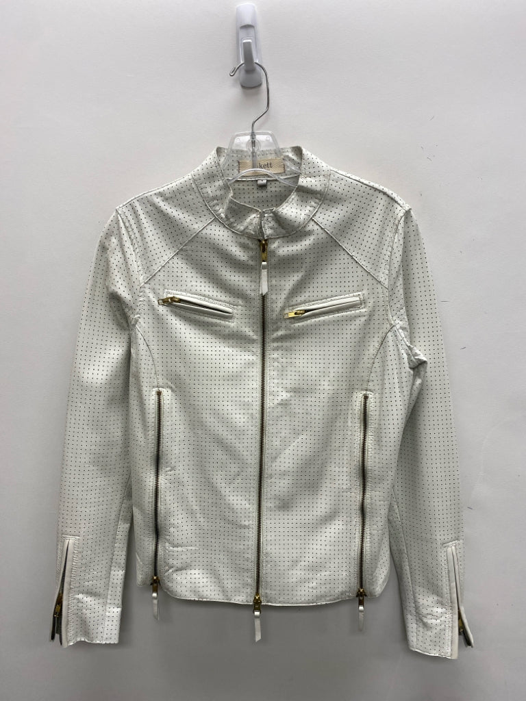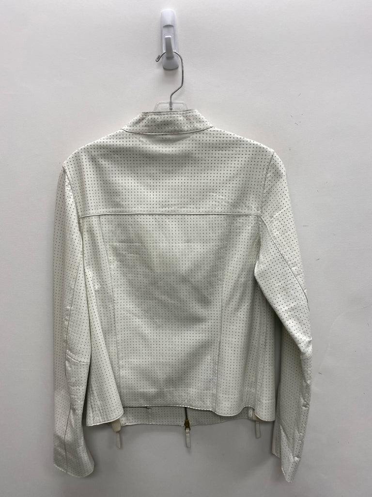 jakett Size S White Perforated Zip Down Leather Ladies Coat