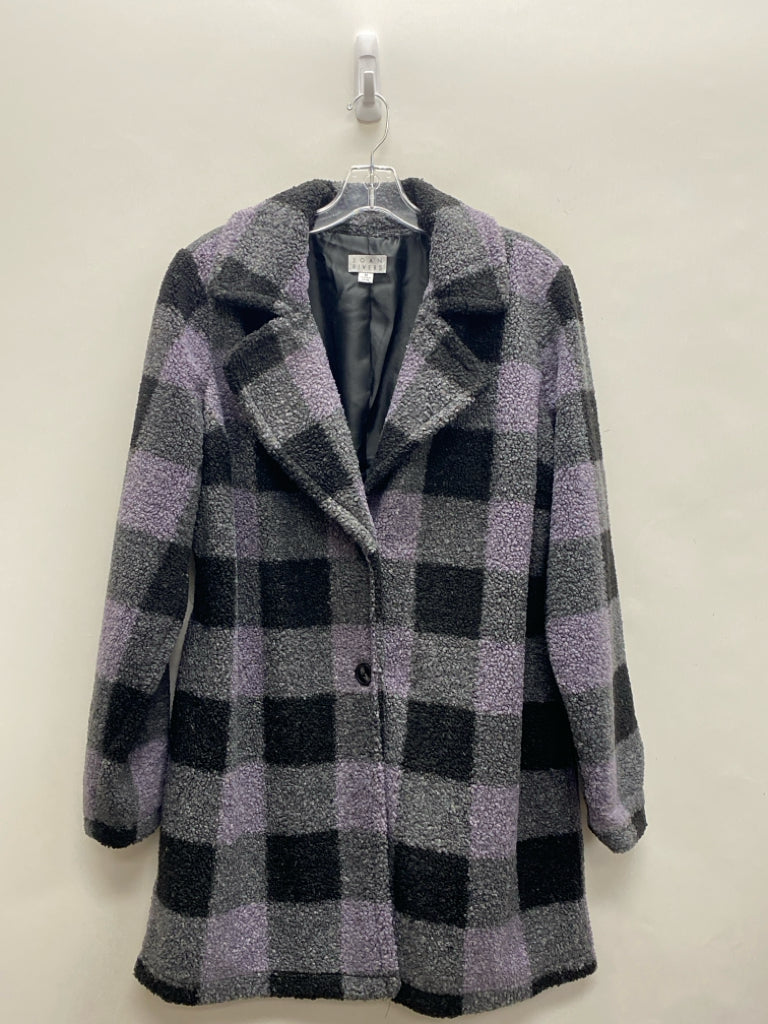 Joan Rivers Size M Black/Gray Lavender Squares Button Up Boucle Ladies Coat