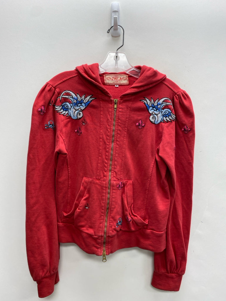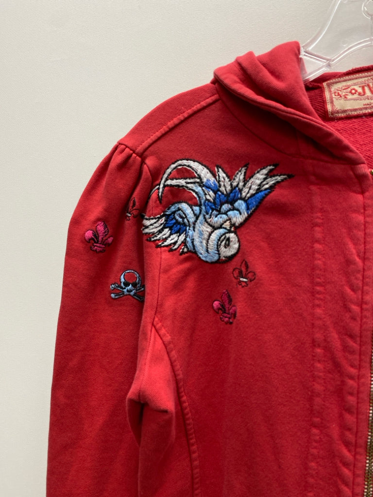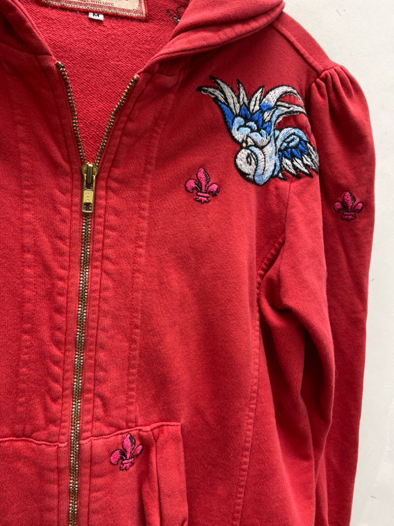 JOHNNY WAS Size M Red White/Multi Birds Zip Down Embroidered Ladies Jacket