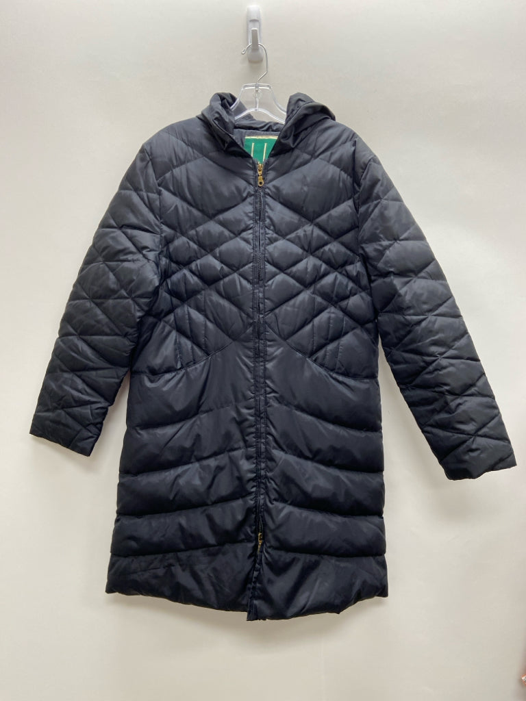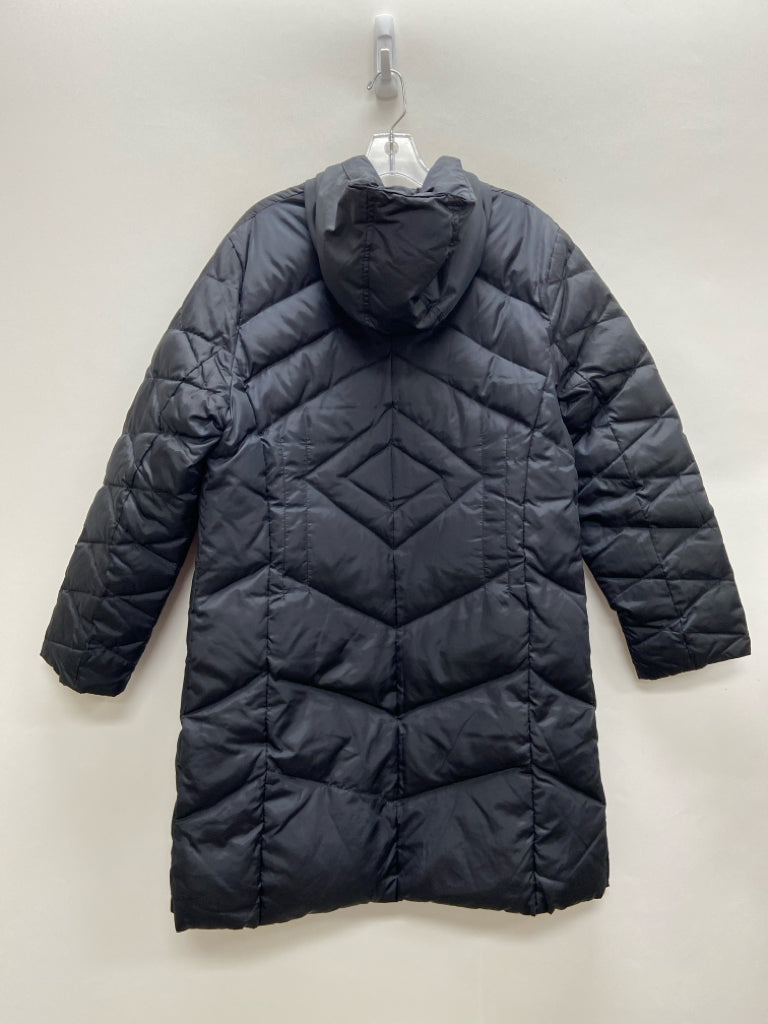 Larry Levine Size L Black Diamond Print Zip Down Down Ladies Coat