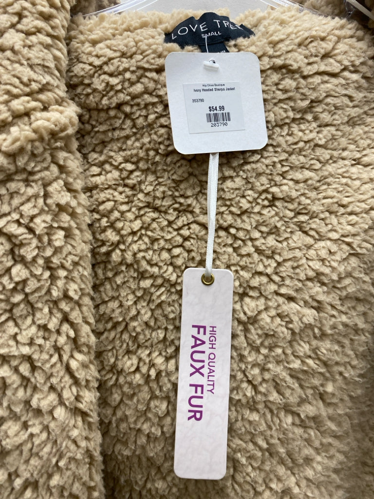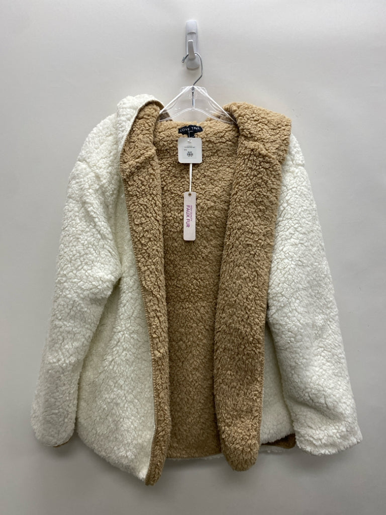 LOVE TREE Size S White Tan Hooded Drape Sherpa Ladies Jacket