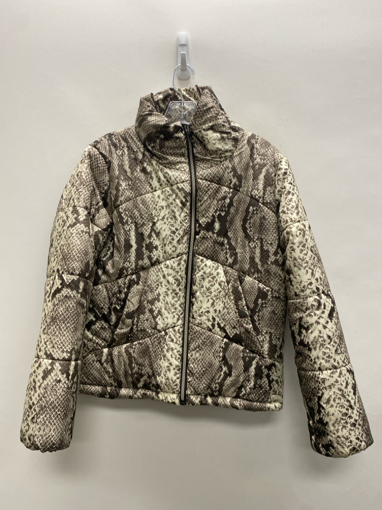 Me Jane Size S Cream Taupe Snake Print Puff Sleeve Ladies Coat