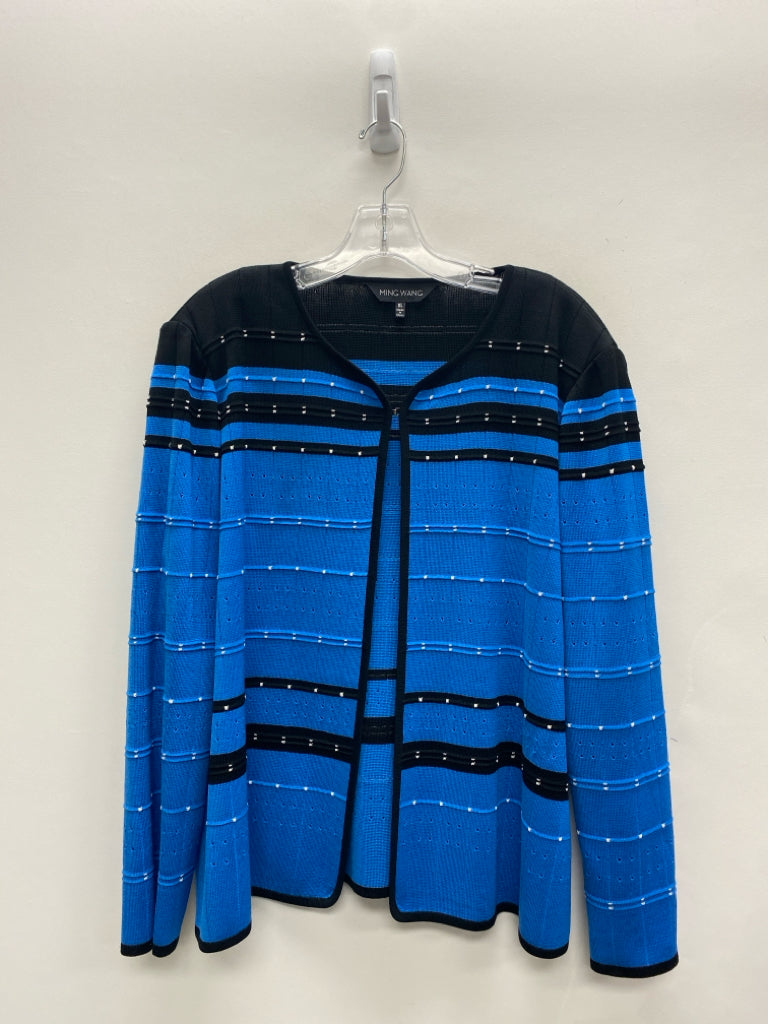 Ming Wang Size XL Black/Blue White Dots/Stripes Drape Ladies Jacket
