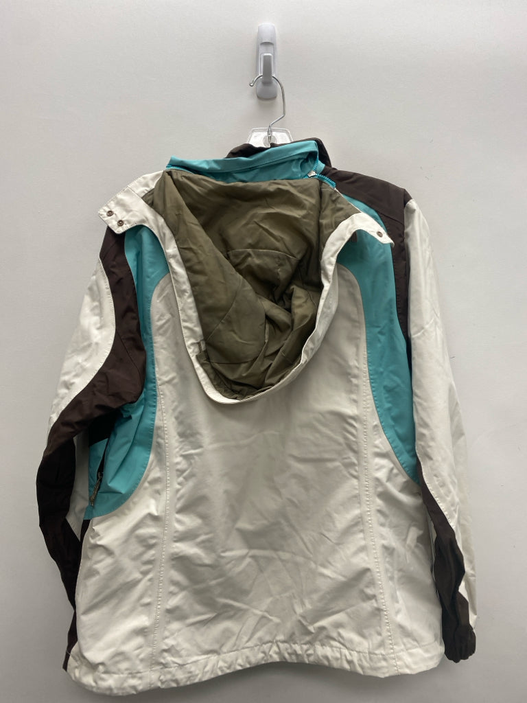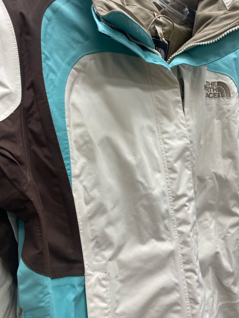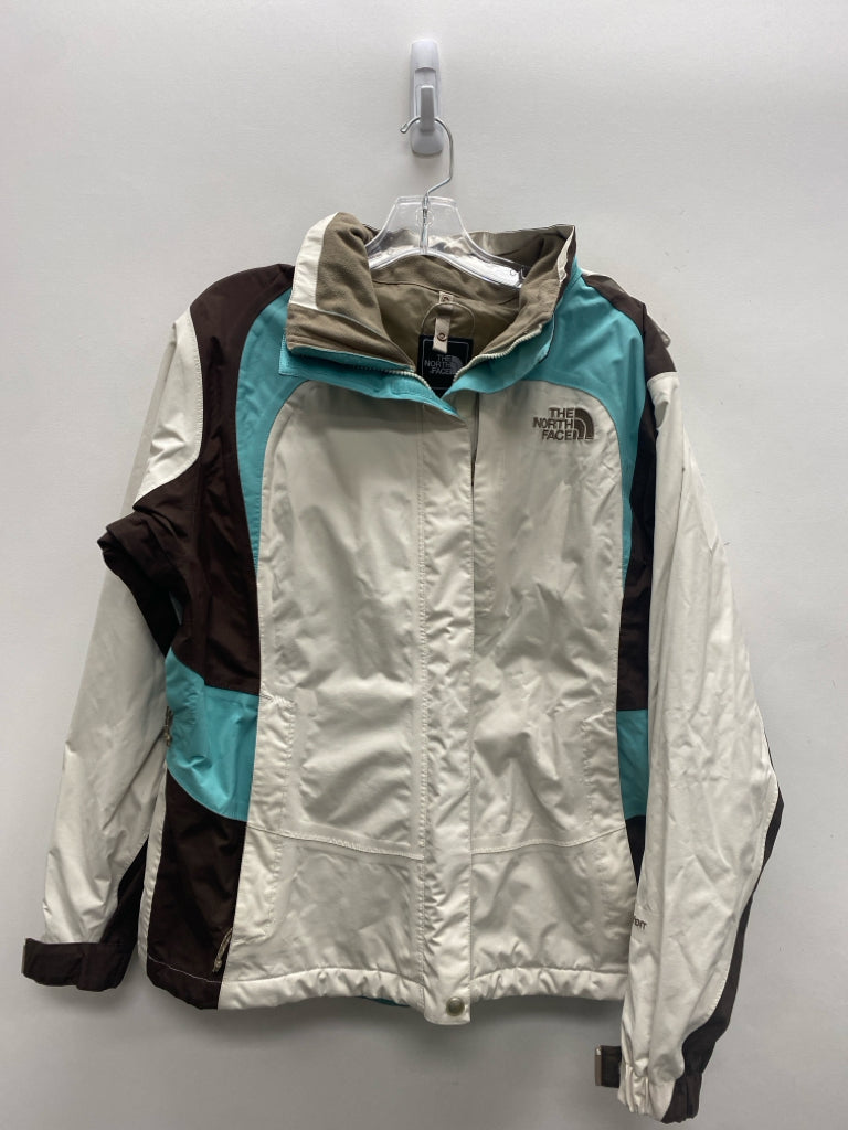 North Face Size M Cream/Brown Aqua Hooded Zip Down Ladies Coat