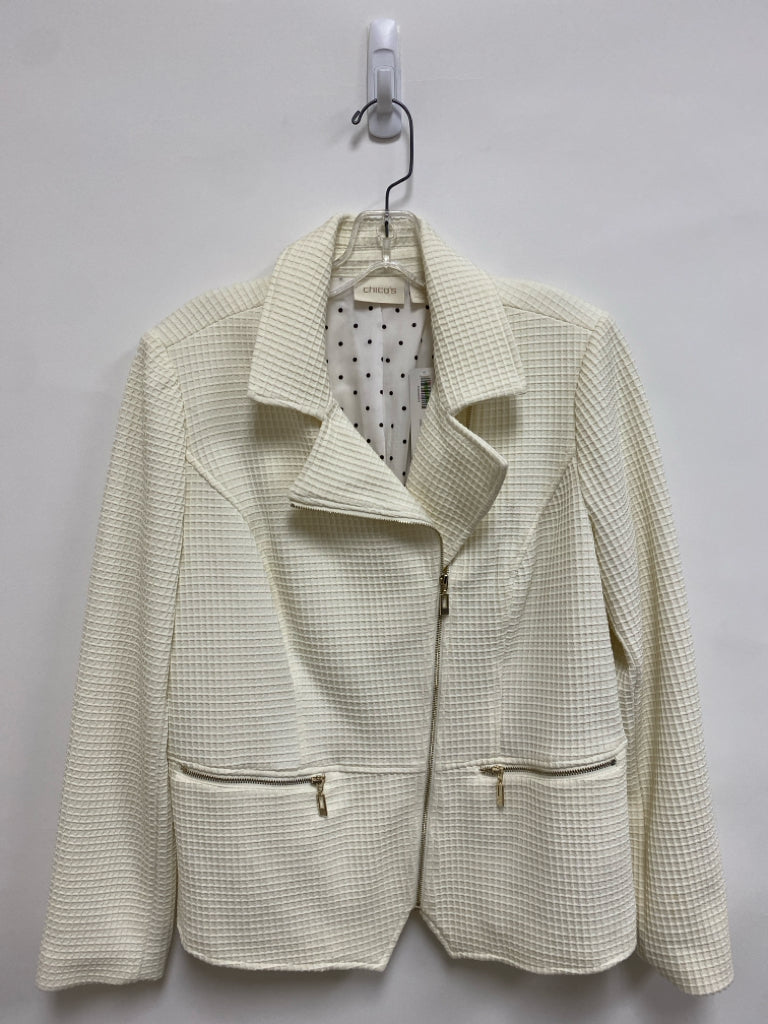 NWT Chico's Size 1 Cream Waffle Zip Down Ladies Jacket