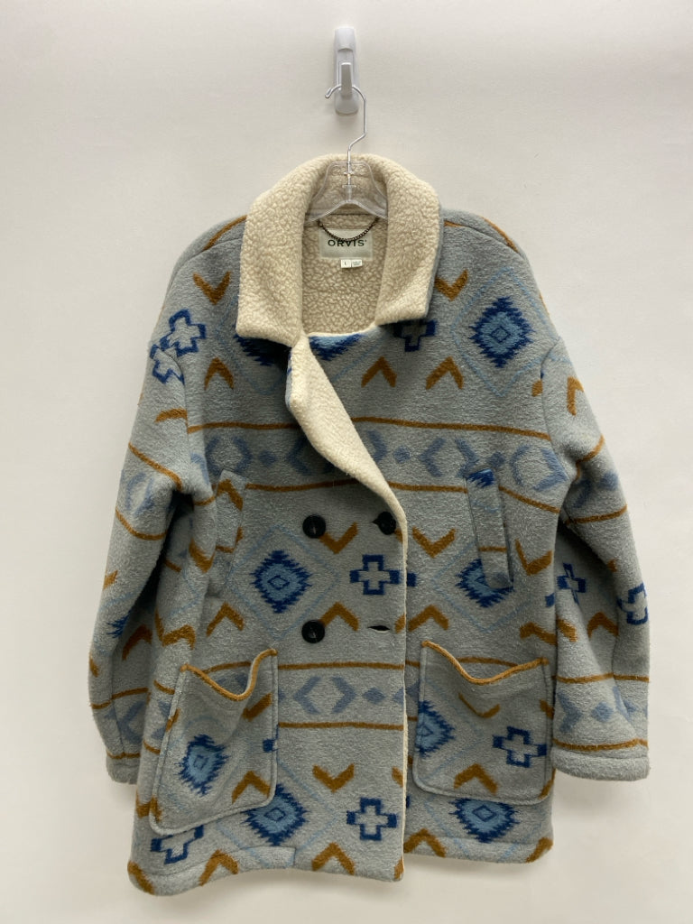 Orvis Size L Gray Tan/blue Southwestern Sherpa Ladies Jacket