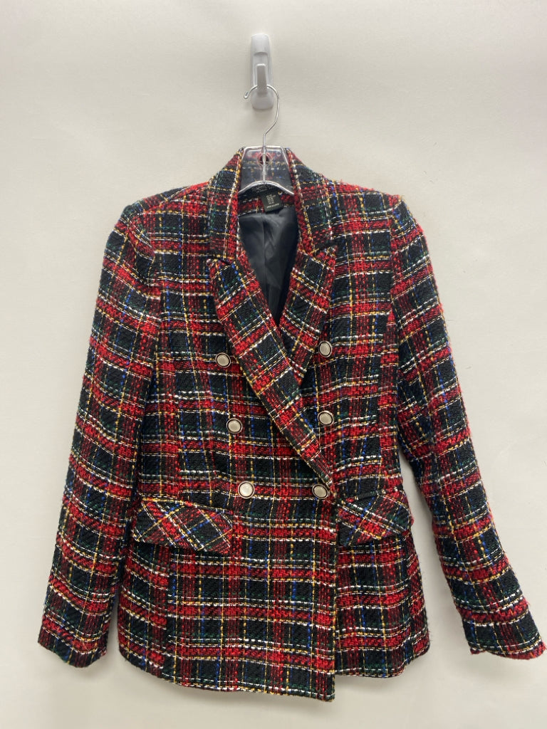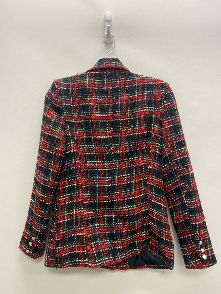 RACHEL ZOE Size XS Red/Black Gold/Green Woven Double-Breasted Ladies Jacket