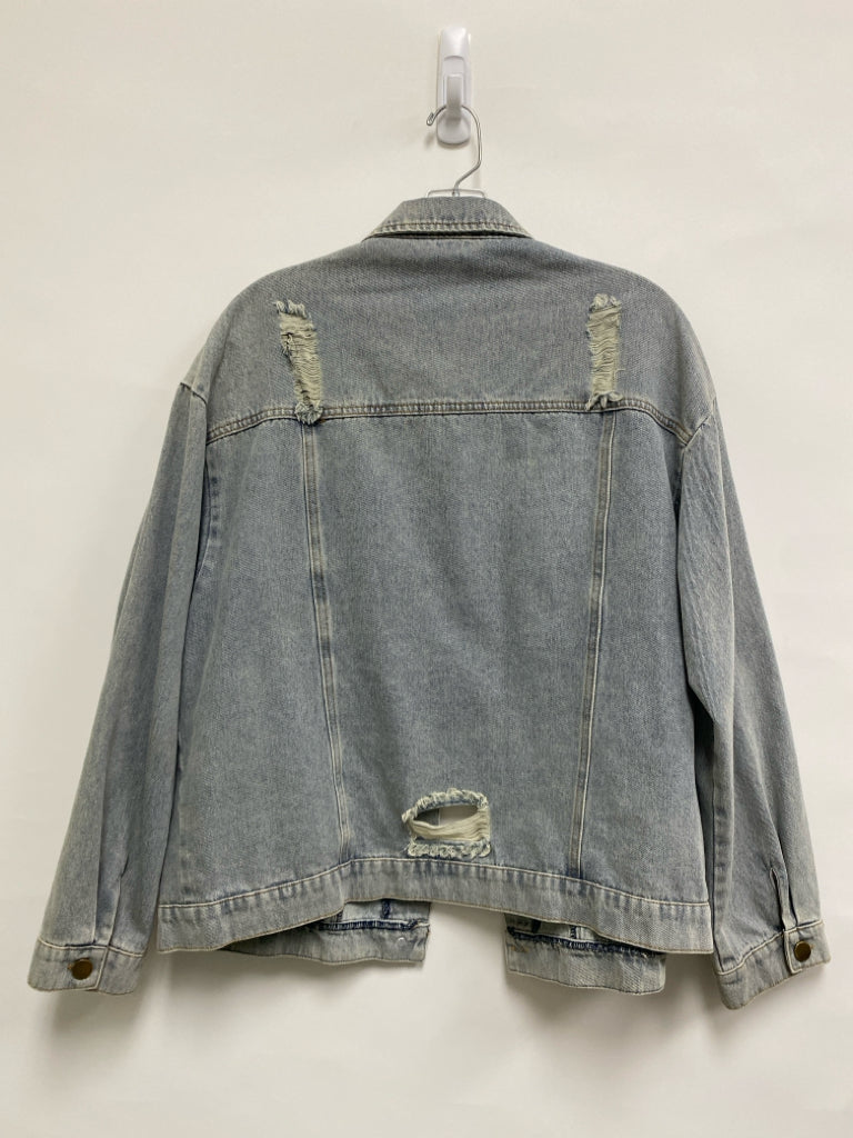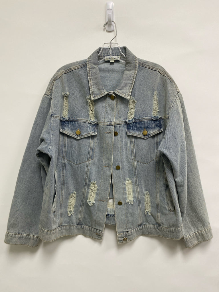 She + Sky Size L Pale Denim Distressed Button Up Ladies Jacket
