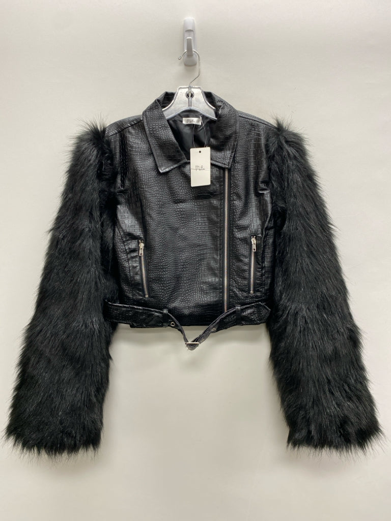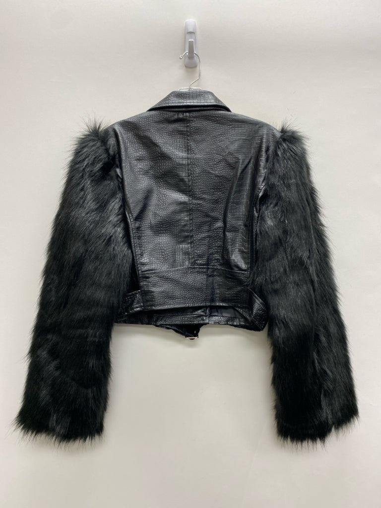 Size L Black Zip Down Faux Fur Ladies Jacket