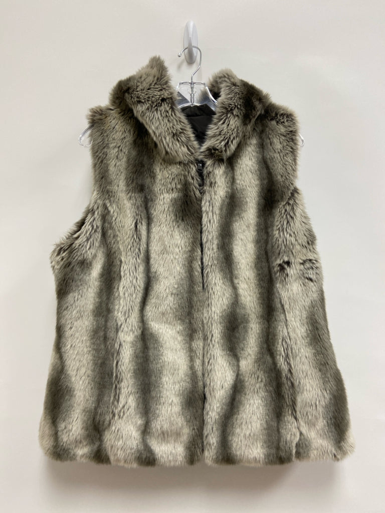 Size L Cream/Brown Reversible Zip Down Faux Fur Ladies Vest