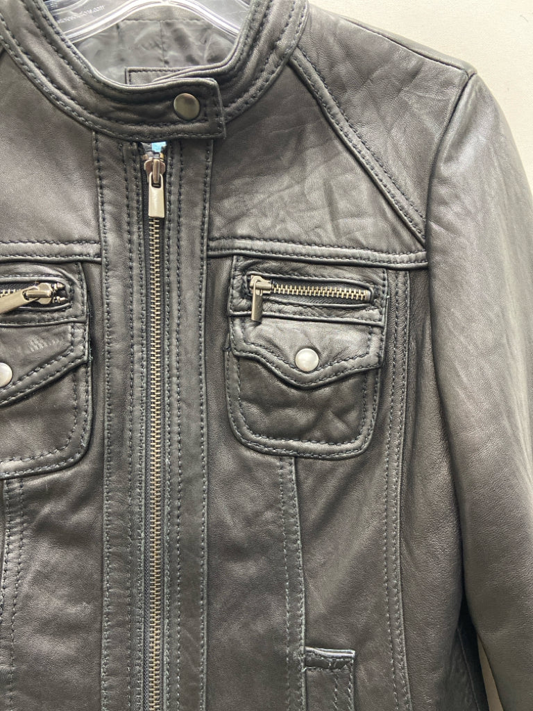 Size M Black Zip Down Leather Ladies Jacket