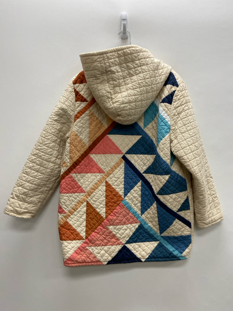 Size OSFM Cream Navy/Multi Diamond Print Hooded Quilted Ladies Jacket