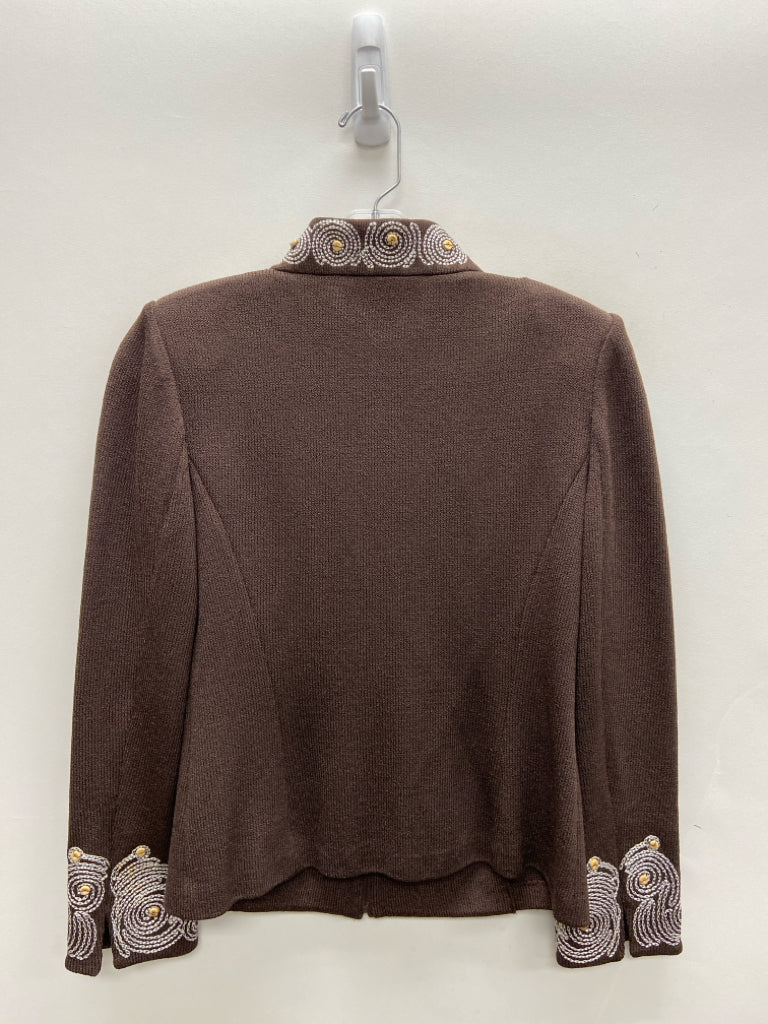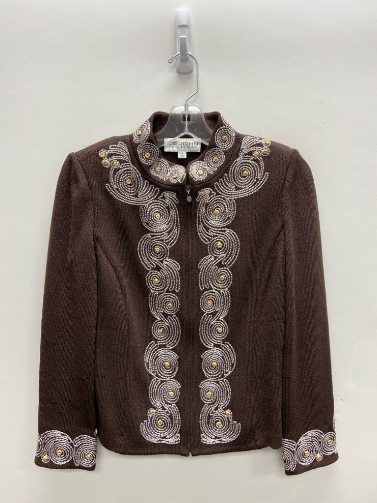 ST. JOHN Size 4 Brown White Swirl Beaded Ladies Jacket