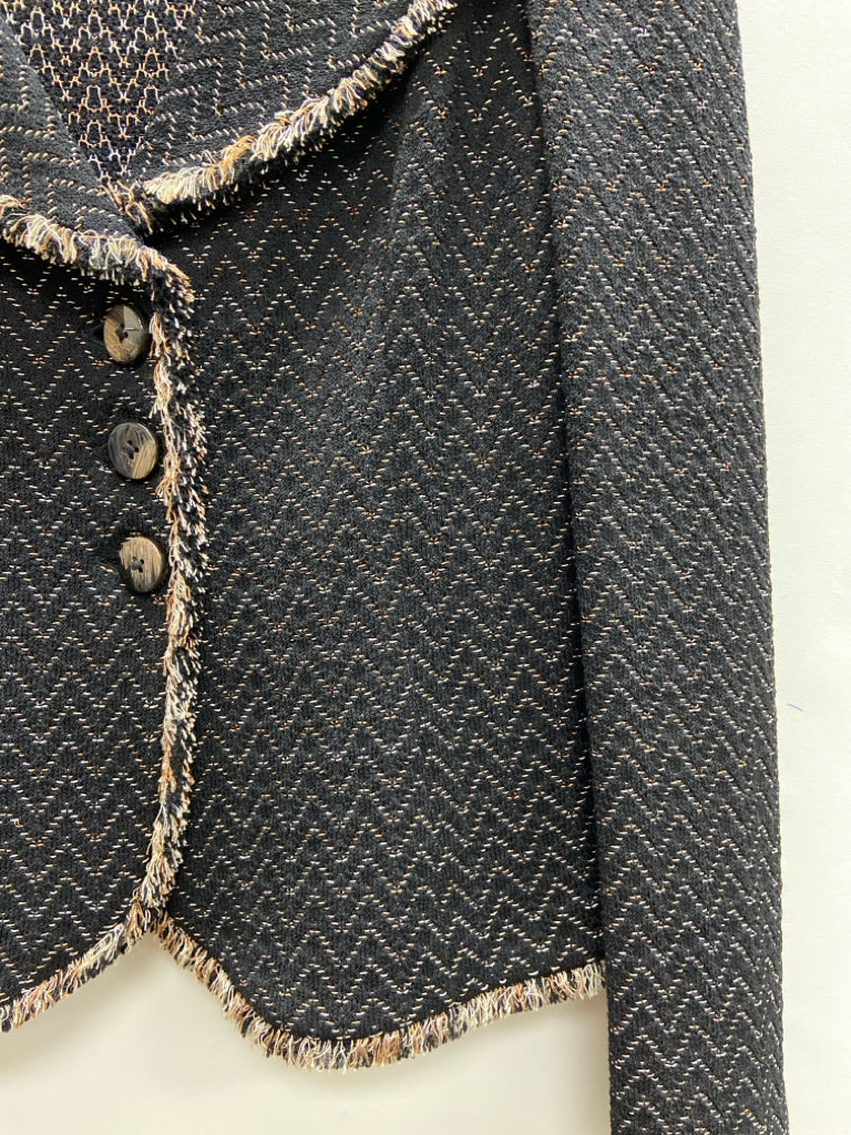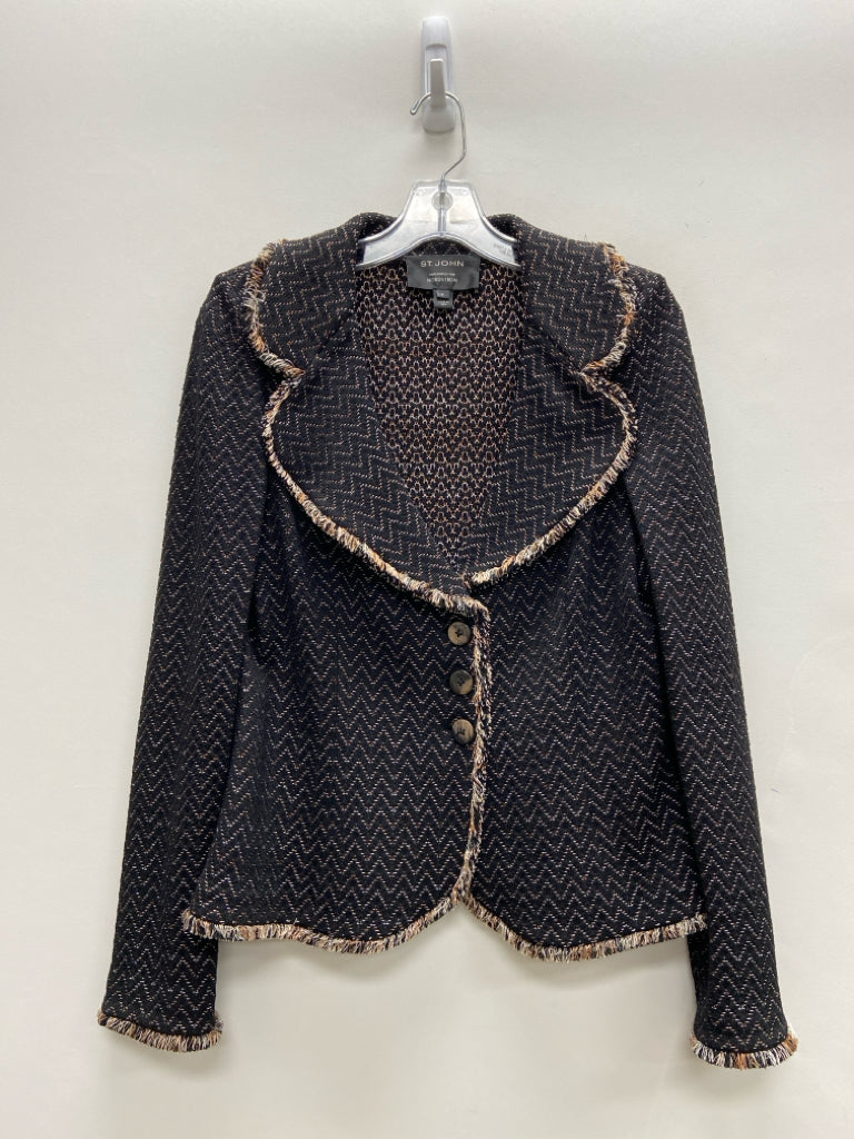 ST. JOHN Size 8 Black Brown/White Zig Zag Ladies Jacket