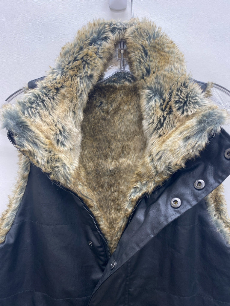 TUCKERNUCK Size S Black Tan/Gray Reversible Faux Fur Ladies Vest