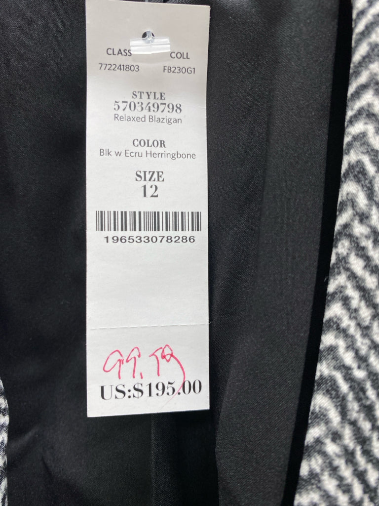 Wht House/Blk Mkt Size 12 White/Black Herringbone Drape Ladies Jacket