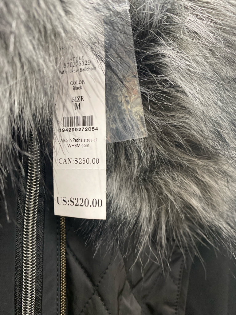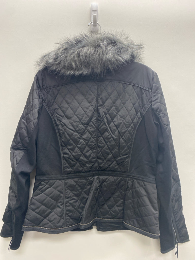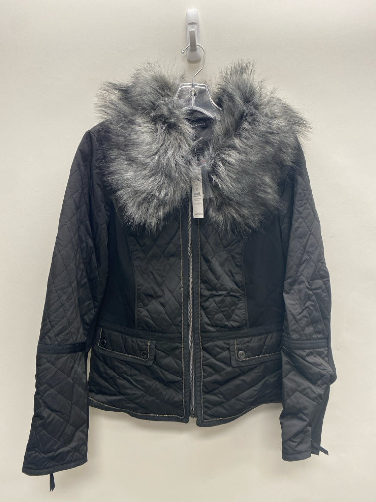 Wht House/Blk Mkt Size M Black Gray Zip Down Faux Fur Collar Ladies Jacket
