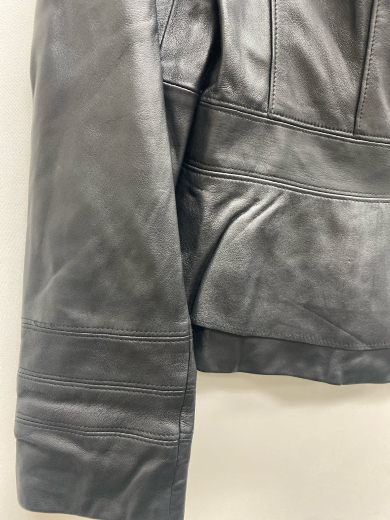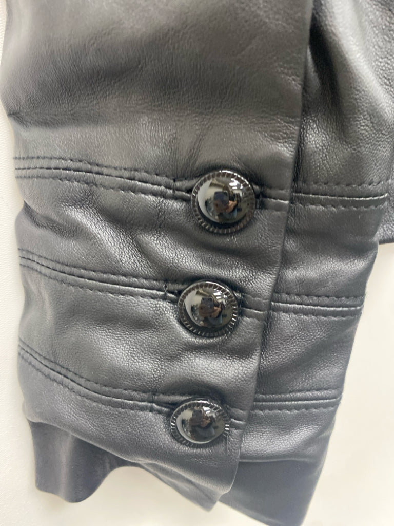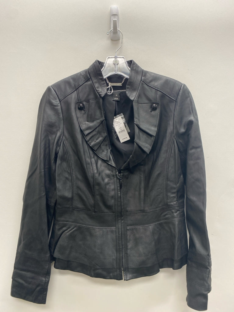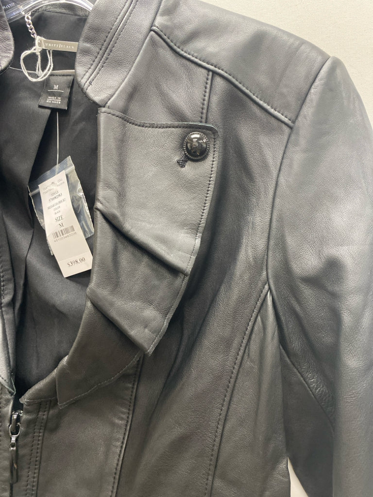 Wht House/Blk Mkt Size M Black Zip Down Leather Ladies Jacket