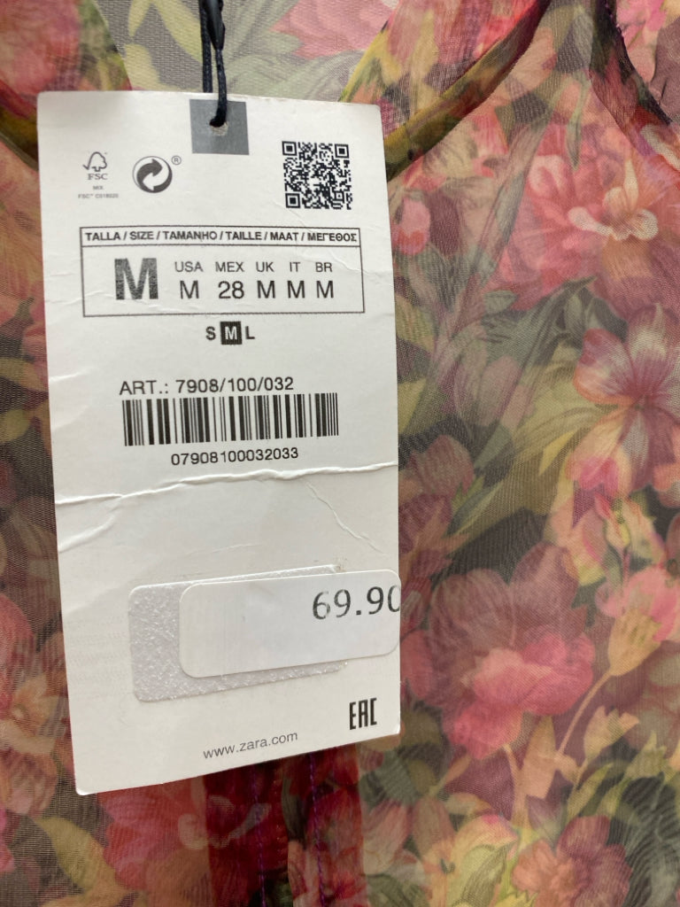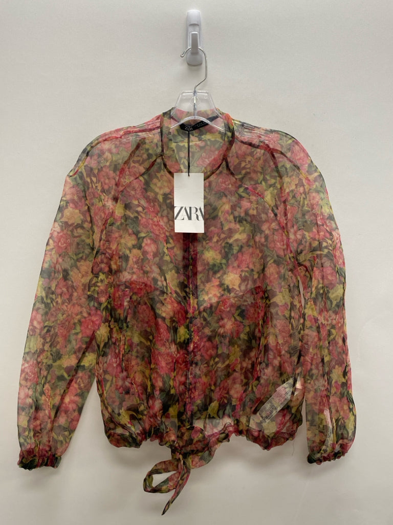 Zara Size M Pink Green Floral Sheer Ladies Jacket