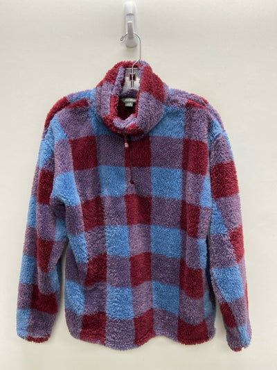 Eddie Bauer Size M Blue Burgundy Checkered Quarter Zip Sherpa Ladies Jacket