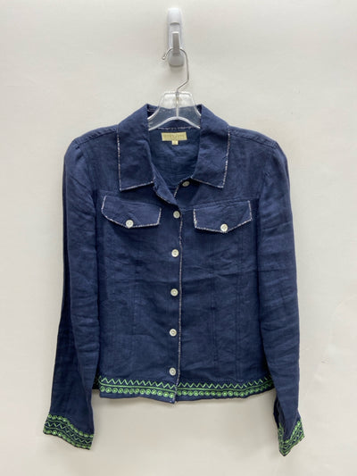 Size XS Navy Silver Trimmed Linen Ladies Jacket