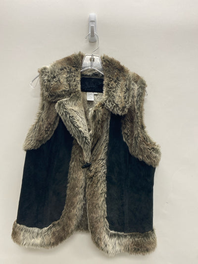 Size L Brown Tan/Black Fuzzy Leather Ladies Vest