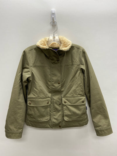 Patagonia Size S Olive Green Oatmeal Button Up Fur Collar Ladies Jacket