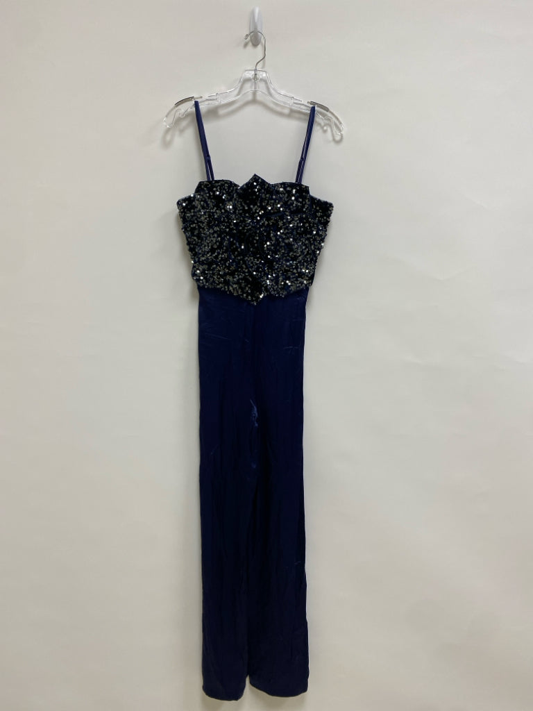 BADGLEY MISCHKA Size 6 Navy Sequins Sleeveless Ladies Jumpsuit