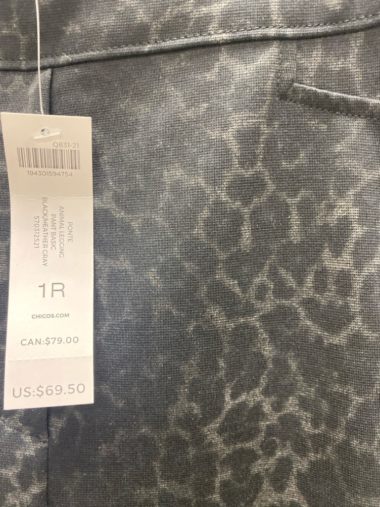Chico's Size 1 Black/Gray Animal Print Pull-on Ladies Leggings