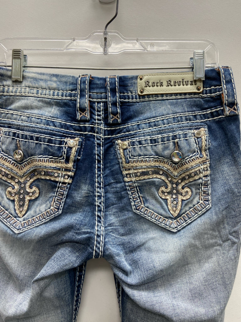 Rock Revival Size 27 Faded Denim Embroidered Ladies Jeans