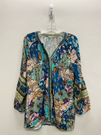 Soft Surroundings Size L Blue Green/Multi Assorted Print Button Up Ladies Top
