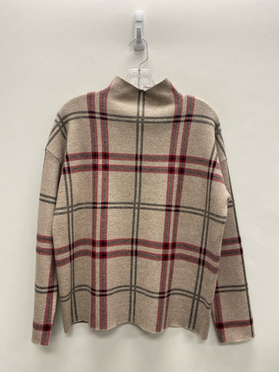 Nicole Miller Size L Taupe Red Plaid Ladies Sweater