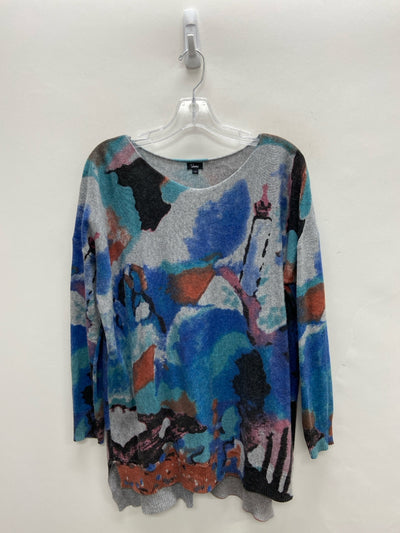 Size L Gray/Blue Aqua/Coral Abstract Ladies Sweater